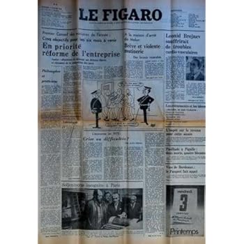 FIGARO (LE) du 03-01-1975 EN PRIORITE REFORME DE L'ENTREPRISE PAR DAVILLE PHILOSOPHES ET PRATICIENS PAR MARCHETTI A LA MAISON D'ARRET DE MELUN - BREVE ET VIOLENTE MUTINERIE - DES LOCAUX INCENDIES LEONID BREJNEV SOUFRIRAIT DE TROUBLES CARDIO-VASCULAIRES PAR NIARACOU ASTROLIGIE PAR FROSSARD KOWEIT OU L'ECONOMIE PAR FOURASTIE ARCHAISMES 1974 PAR FABRE-LUCE SALUT A L'OCCIDENT ARABE PAR MIKES FUSILLADE A PIGALLE VINS DE BORDEAUX - LE PARQUET FAIT APPEL SOLJENITSYNE INCOGNITO PARIS L'EC...