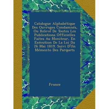 Catalogue Alphabétique Des Ouvrages Condamnés, Ou Relevé De Toutes Les Publications Officielles Faites Au Moniteur, En Exécution De La Loi Du 26 Mai 1819. Suivi D'Un Mémento Des Parquets. Reviewed by Rocky C. Rating: