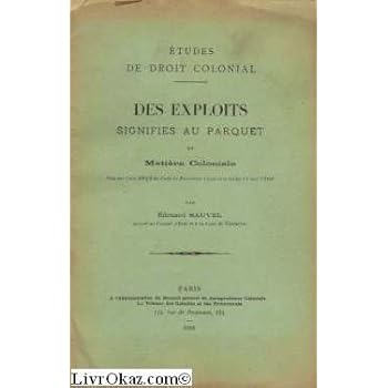 Je crois que le Etudes de droit colonial. Des Exploits signifiés au parquet en matière coloniale, note sur l'art. 69, e 9, du Code de procédure civile et la loi du 11 mai 1900, par Édouard Sauvel est au fait un des plus souvent exploré produits en ce moment.