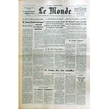 MONDE (LE) [No 8885] du 08/08/1973 - ATTENTAT D'ATHENES - YASSER ARAFAT CONVOQUE A BEYTROUTH LES DIRIGEANTS PALESTINIENS - LE BUDGET - G. D'ESTAING - M. GIRAUD ET LE PERSONNEL DE LIP - LE TEMPS DES VINS CANAILLES PAR DOUTRELANT - AUX U.S.A. - LE PARQUET DE BALTIMORE OUVRE UNE ENQUETE SUR LE PASSE DE M. AGNEW.. Reviewed by Victor F. Rating:
