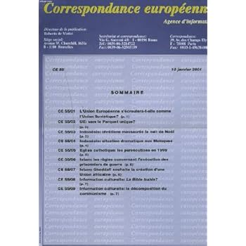 CORRESPONDANCE EUROPEENNE. AGENCE D'INFORMATION. CE 55, 10 JANV. 2001. L'U.E. S'ECROULERA-T-ELLE COMME L'UNION SOVIETIQUE ?/ UE: VERS LE PARQUET UNIQUE ?/ INDONESIE: CHRETIENS MASSACRES LA NUIT DE NOEL / .... Reviewed by Mike S. Rating: