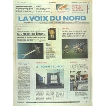 VOIX DU NORD (LA) [No 13438] du 20/09/1987 - IDS - LA GUERRE DES ETOILES PESERA SUR LE SOMMET REAGAN - GORBATCHEV - ARCHITECTURE - LE TRIOMPHE DE L'ARCHE - LES SPORTS - CYCLISME - FOOT - CARREFOUR DU DEVELOPPEMENT - LE PARQUET DEMANDE LA MISE EN LIBERTE D'YVES CHALIER. Reviewed by Milner O. Rating: