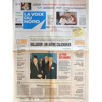 VOIX DU NORD (LA) [No 15338] du 16/10/1993 - LE 1ER MINISTRE S'OPPOSE A LA STRATEGIE PRESIDENTIELLE DE CHIRAC - LES SPORTS - FOOT - BOXE AVEC WAMBA ET TAFER - ASSISES - FRANCK POUPEE 15 ANS DE RECLUSION - MESSAGE D'ESPOIR PAR MARSAL - LES RETRAITES - QUELLES SOLUTIONS - CITROEN - 2038 POSTES SUPPRIMES EN 94 - VERS UN POUVOIR ELARGI DU MINISTRE SUR LES MAGISTRATS DU PARQUET - BAYROU - LA LECTURE EST LA PRIORITE DE L'ECOLE - PRIVATISATION - BNP UN LARGE SUCCES POPULAIRE. Reviewed by William A. Rating: