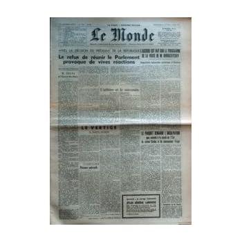 MONDE (LE) N? 4716 du 20-03-1960 le refus de reunir le parlement provoque de vives reactions par viansson-ponte l'arbitre et le souverain par chenebenoit le vertige par duverger m. segni a l'heure du choix puissance paternelle par escarpit le parquet demande l'inculpation pour atteinte a la surete de l'etat du colonel gardes et du commandant filippi - l'accord est fait sur le programme de la visite de khrouchtche. Reviewed by Keenan I. Rating: