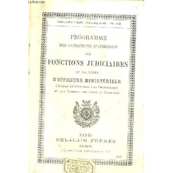 PROGRAMME DES CONDITIONS D'ADMISSION AUX FONCTIONS JUDICIAIRES ET AUX TITRES D'OFFICIERS MINISTERIELS D'AVOCAT ET D'ATTACHE A LA CHANCELLERIE ET AUX PARQUETS DES COURS ET TRIBUNAUX / COLLECTION DELALAIN N°49.. Reviewed by Eric G. Rating:
